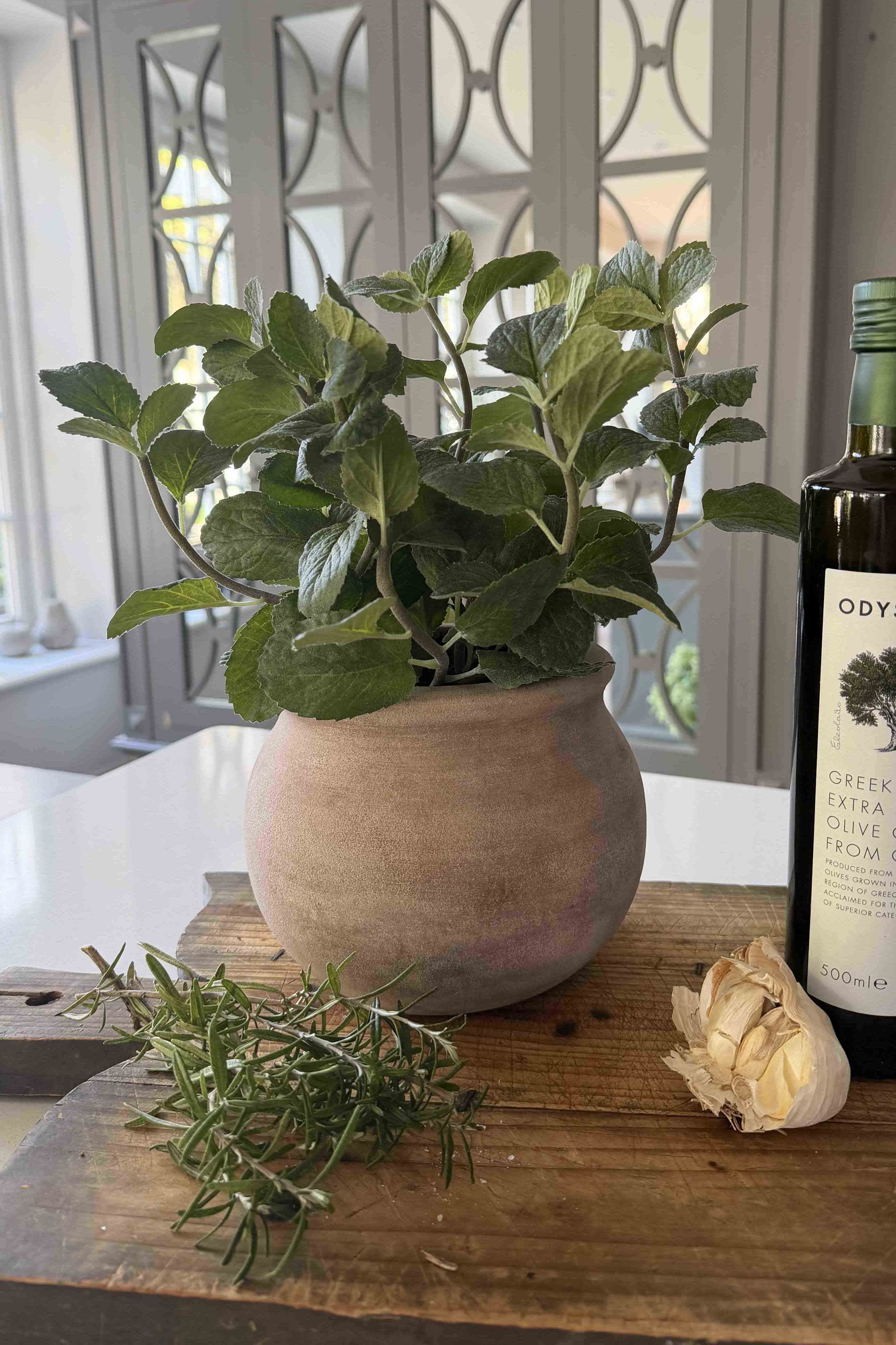 Get the look of fresh mint without the fuss. This very realistic faux plant is naturally arranged in a terracotta pot that works with any style. No watering, no wilting, no green thumb required—just instant greenery for your kitchen island, corner or shelf!