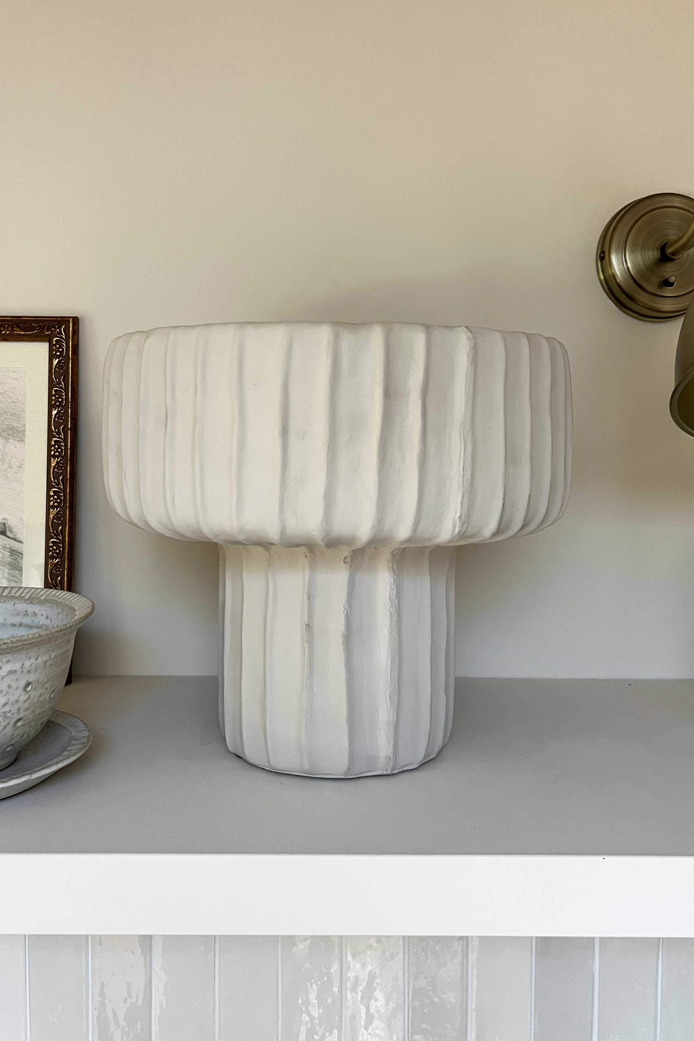Decorative Ridged Vase in a matt ivory white finish. A timeless and refined piece, perfect for a console or side table.